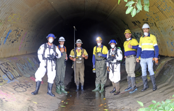 Inspections were completed through a collaborative effort between Lismore City Council staff, specialist contractors and NSW Police Rescue. Photo: suppliedThe upgrade of the Browns Creek pump station in downtown Lismore has taken another important step forward, with detailed inspections and GPS mapping of the creek’s underground pathway beneath Clyde Campbell Car Park now complete.
