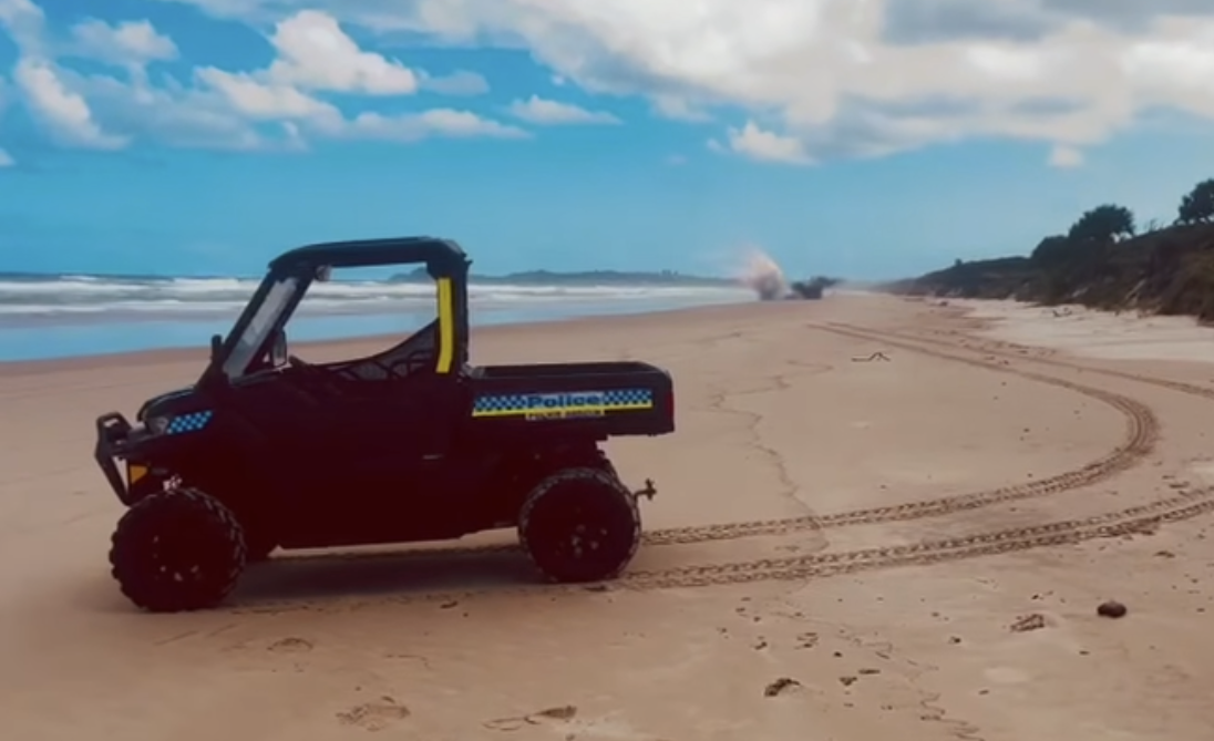Police explode the UXO. Photo: suppliedAbout 7.20am yesterday (Monday, 19 January 2026), police were called to Lennox Head Beach following reports that an unexploded ordnance (UXO) had washed up on the shore.