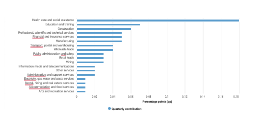 The Healthcare and social assistance industry was the main contributor to wages growth for the private and public sector this quarter.