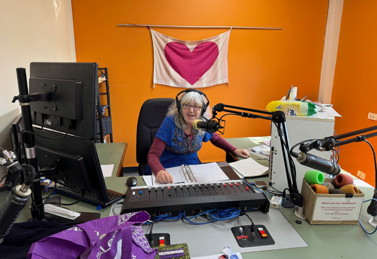 (Fran Healy broadcasting on 92.9 River FM from its South Lismore home)
