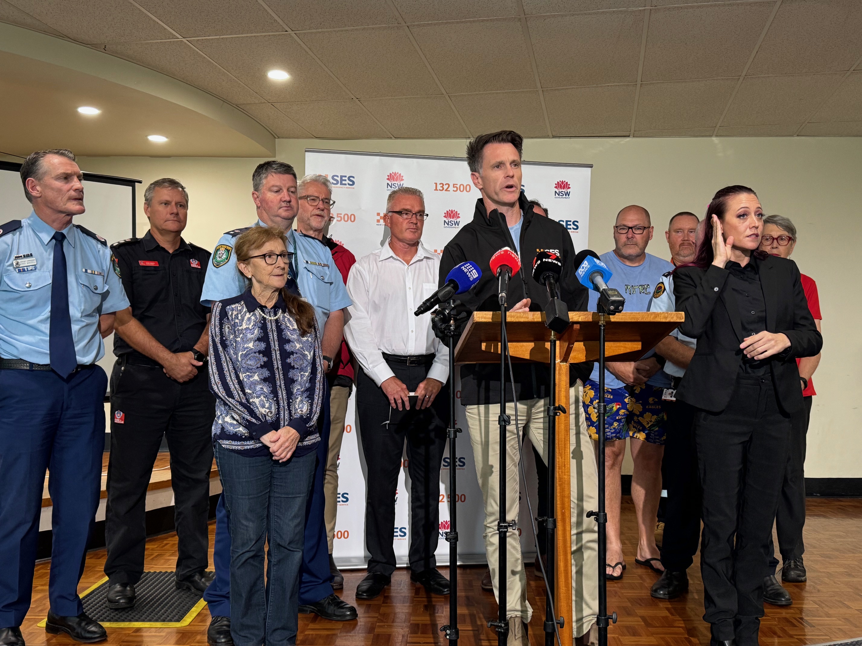 (Premier Chris Minns addresses the media during ex-Tropical Cyclone Alfred in March at the Lismore Workers Sports Club in Goonellabah)