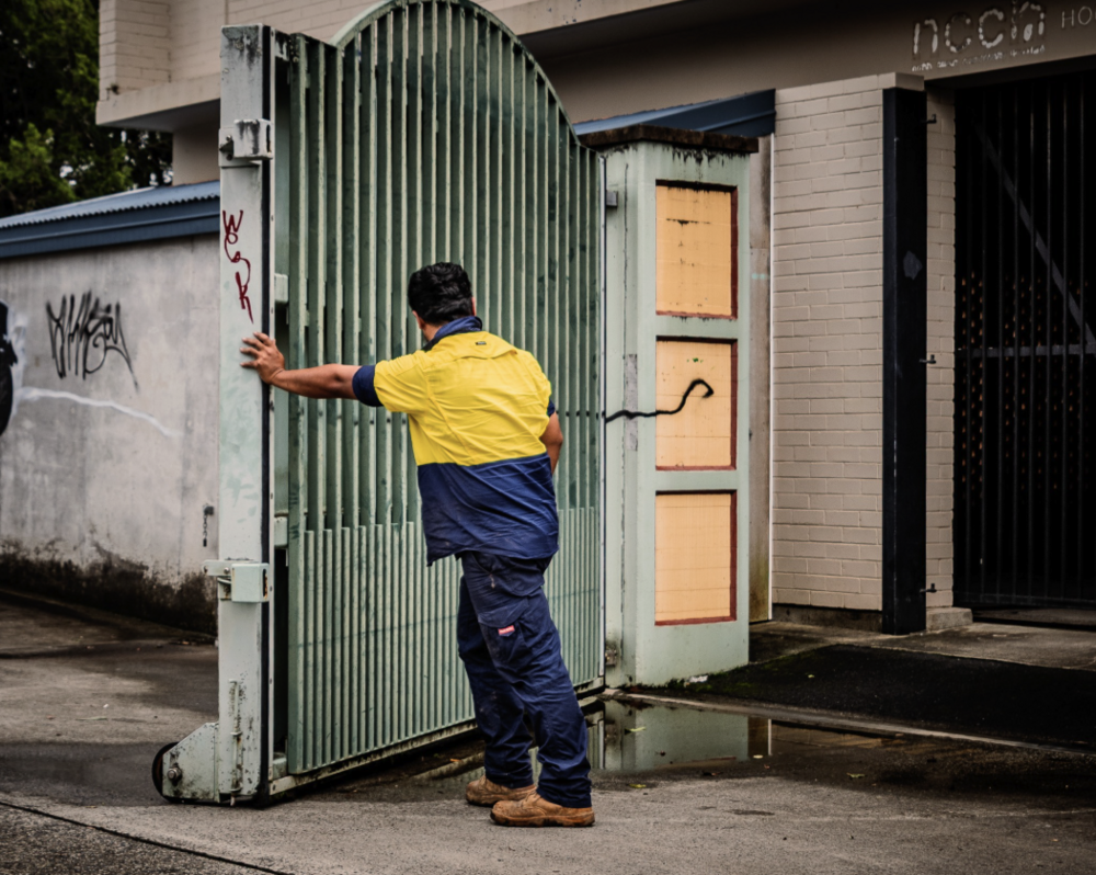 As part of its standard flood response procedures, Lismore City Council crews have closed the lower levee gates ahead of the Wilsons River, reaching 4 metres.
